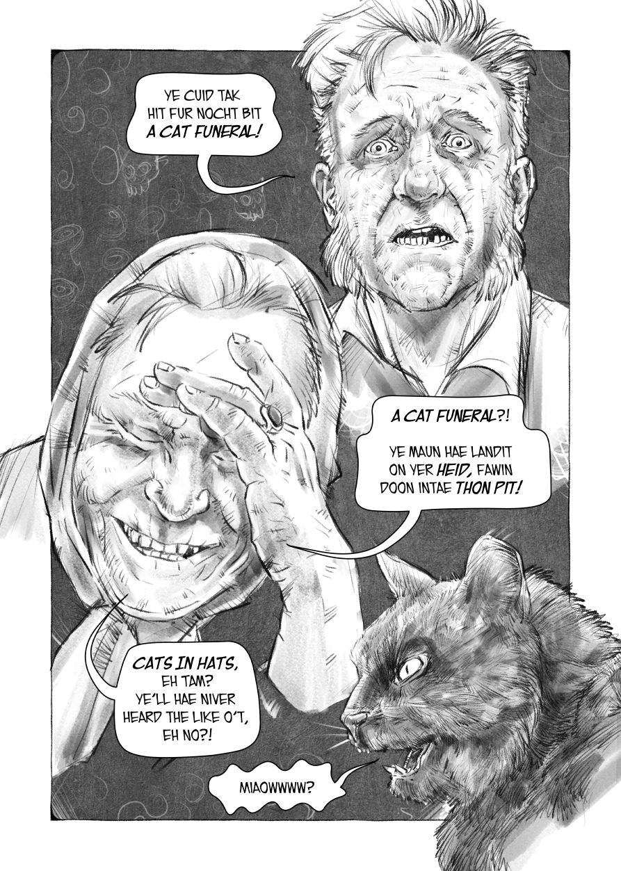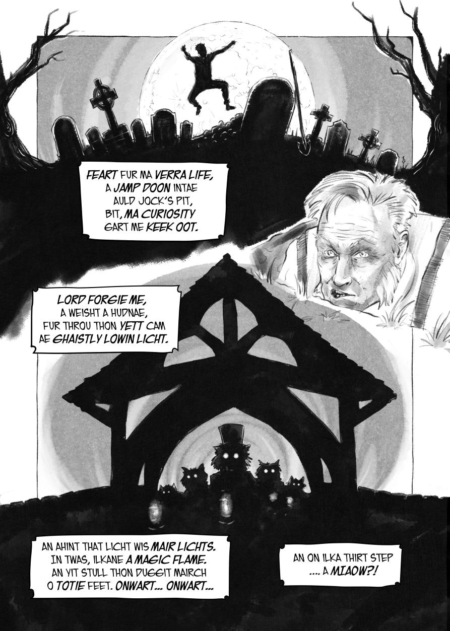I'm happy to reveal my latest work, 'The King o' the Cats', an illustrated retelling of the classic folktale. Spooky cat-related goings on in a graveyard lead to a surprising finale.
